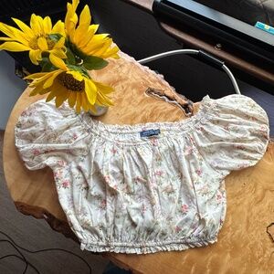 Romantic Ralph Lauren Polo Blouse | Flower Blouse | Crop Top | Off the Shoulder