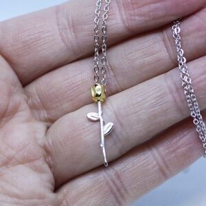#rosenecklace #rosegoldvermeil #sterlingsilverjewelry #twotonependant #handmadeluxe #delicatenecklace #everydayelegance #giftforher #floraljewelry #daintynecklace #romanticjewelry #oneofakindjewelry #artisanmade #goldandsilver #discontinuedstyle