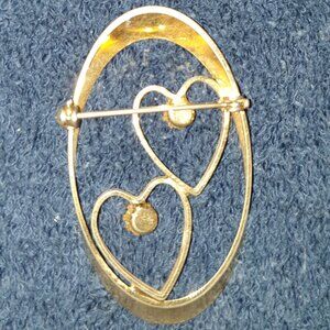 Romantic Vintage 2-Heart Gold Tone with Red Rhinestones Brooch