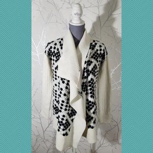 Romeo + Juliet Couture White & Black Checkered Knit Waterfall Cardigan