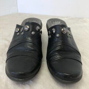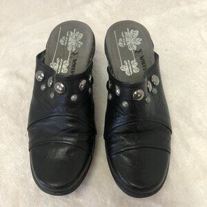 Romika Black Leather Mule Clogs Size 37 (6.5)