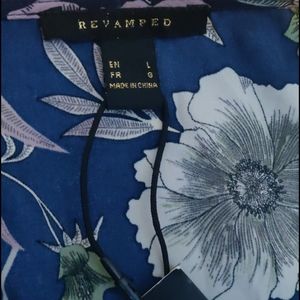 Flowy floral and blue romper. Ties in the front above a cut out on stomach. Perfect for up-styling summer.