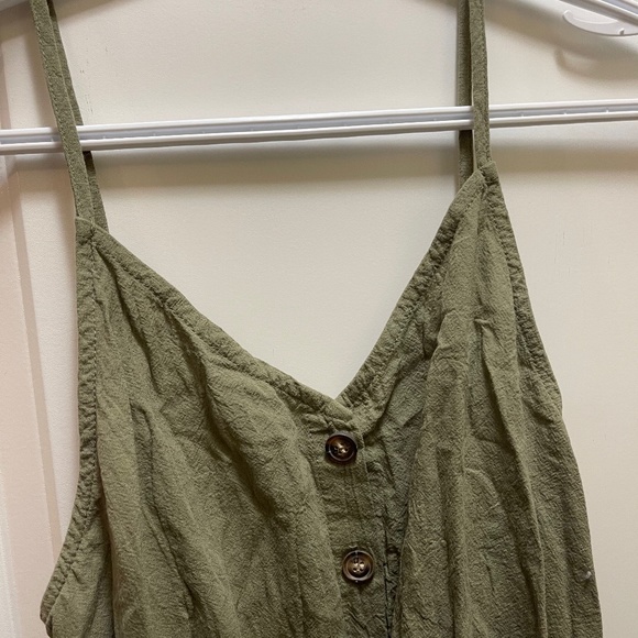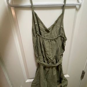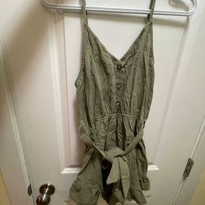 Green romper with tie and buttons, size medium