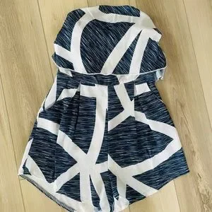 Blue and white patterned romper size small super cute ties up with big bow in the back brand new never been worn