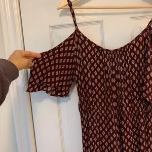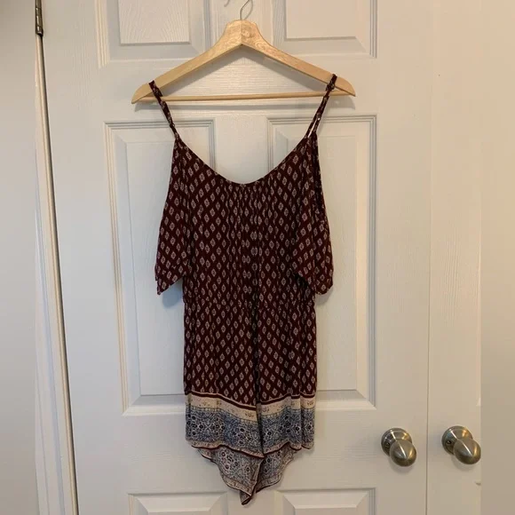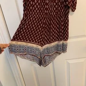 Super cute patterned romper with off-shoulder short sleeves