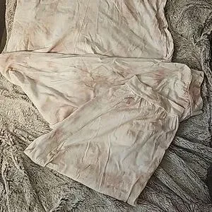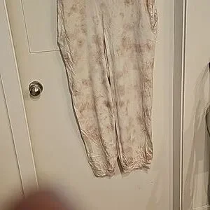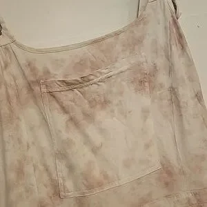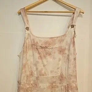 Oversize, slouchy cotton overalls. T-shirt type knit. Would probably best fit a taller person, although there are numerous possibilities with this piece! Neutral mauve slate and cream tie die style colour. Super comfy and loungey.