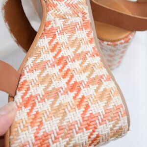 Ron White Houndstooth Tweed Woven Platform Wedge Sandals Sz 9