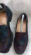 a pair of women's loafers with a dark background and a colorful floral pattern