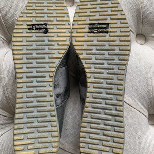 Amazingly comfortable! stretch band across top of foot.