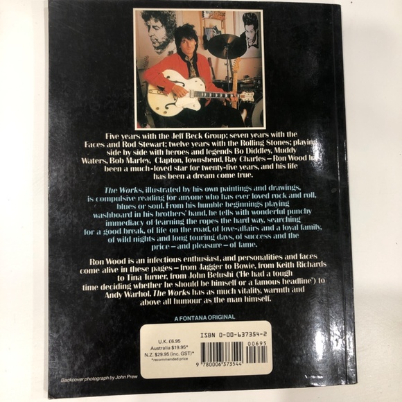Great vintage condition book featuring the art of Rolling Stones guitarist Ron Wood. Some normal yellowing and a couple small makings on page edges . ©️1987