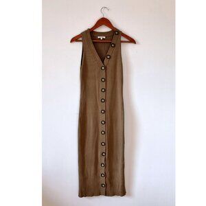 Ronny Kobo Elanna Button Front Midi Bodycon Dress Khaki Brown Size Large
