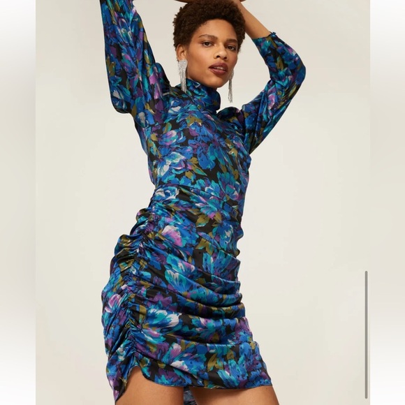 Make a statement in this painterly printed Ronny Kobo mini dress, inspired by the glamour of the ‘80s.