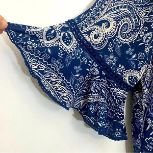 Roommates women’s blue paisley floral lightweight flowy cottagecore boho top 3X