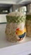Charming ceramic salt and pepper shakers with rooster design. Features green accents.