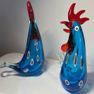 Rooster Chicken Figurine Murano-Style Blue Glass. Heavy. Amazing!