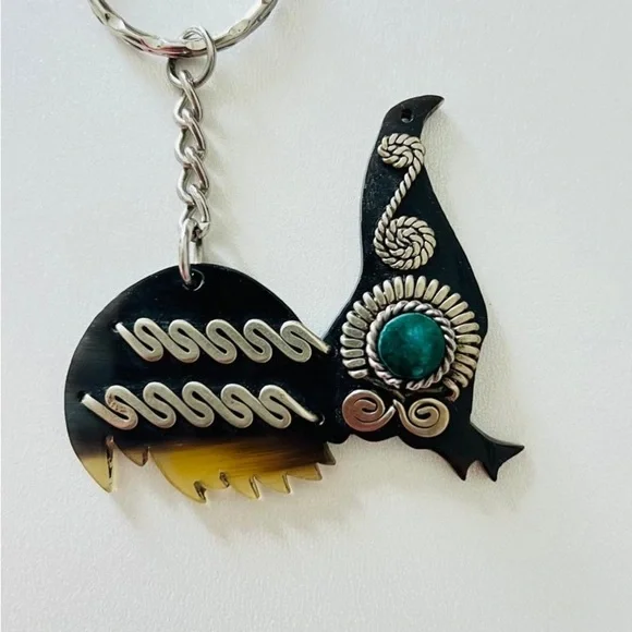 Rooster keychain, bull horn from Mexico
