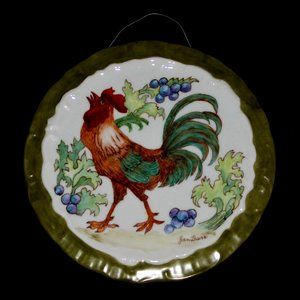 Hand painted by Jan Barr, this piece of a strutting and crowing rooster has lovely colours. The plate is 6.5" in diameter and is in excellent vintage condition without any chips, cracks, crazing, or flaking. Ready to hang and would make a thoughtful gift for the all-things-rooster collector in your life.
