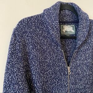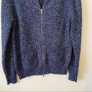 Root-navy & White Full Zip Double Pocket Knitted Sweater (Small)