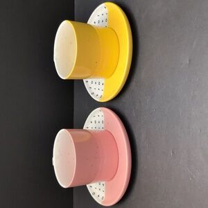 Roots 7,two tone ceramic yellow and pink pastel glaze set of 2 cups and saucer set.