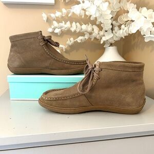 Roots 73 Men’s Suede Leather Windsors Chukka Boots in Classic Tan, Moccasin stitching and wrap around rubber sole. Lace up. Removable insole. Size 9 Excellent Pre-Loved Condition!!