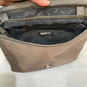 Roots 73 Nylon and Leather Taupe Colored Crossbody Bag with Adjustable Strap