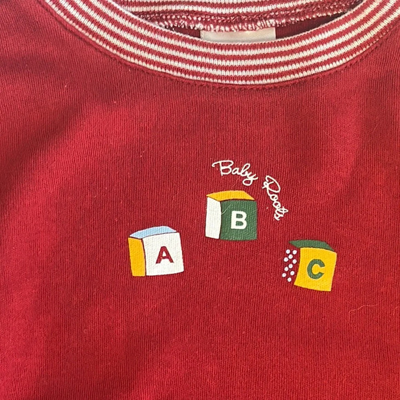 This vibrant red long sleeve tee from Roots Baby features a playful striped cuff design, adding a touch of fun to its classic crew neckline. Made for comfort, it's perfect for casual everyday wear.
