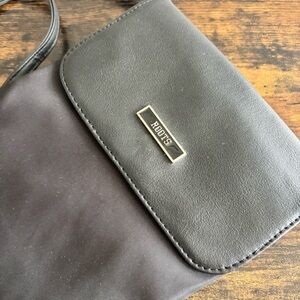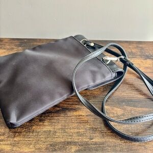 Roots| Black Leather & Nylon Crossbody Pocket Shoulder Bag Purse Adjustable 11”