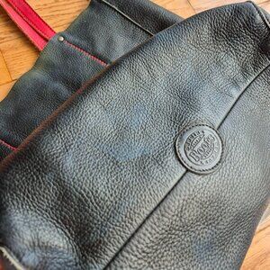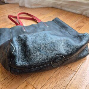 Roots Black Leather Tote with Red Handles