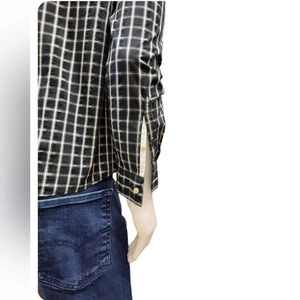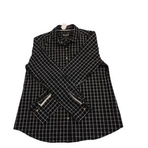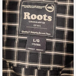 Roots Black White Plaid Long Sleeve Button Down Shirt Size Large