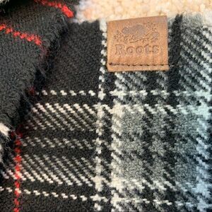 ROOTS Black red gray white striped plaid check unisex fall winter warm scarf 💥