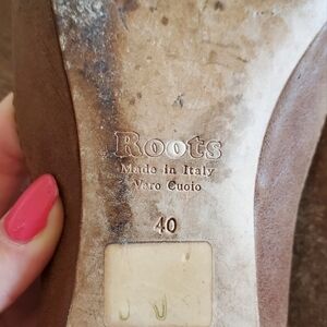 ** a bit scuffed and worn; some marks; toe is lifting on one shoe-still has life left and kind of works for these shoes (faux distressed) **