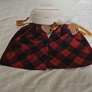 Roots Bundle Of 2 Drawstring Gift Bag & Makeup Bag Small Red/ Black