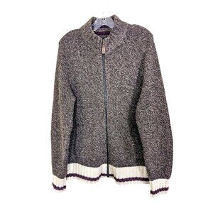 Roots Cabin Canada Wool Blend Sweater Cardigan Mens Med Knit Zip Brown Patches