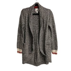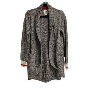 Roots Cabin Cotton Open Front Long Cardigan Sweater Coat Grey Oat Mix S