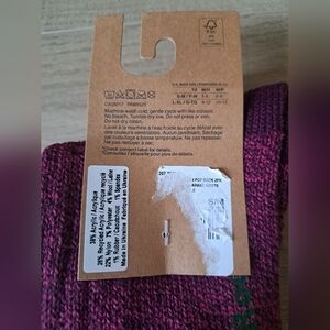 Cozy knit socks in burgundy and cream. Perfect for warmth and style.