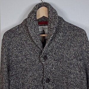 Roots Cabin Sweater Men's Small Gray Shawl Collar Cotton Grandpacore Preppy Dad