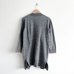 Roots Cabin Shawl Open Cardigan Two Pockets Women's M. Black/White Heather. Sock Monkey Cuffs. Cotton blend, lighter weight. Longline. Very good used condition. Please see photos for approximate measurements.