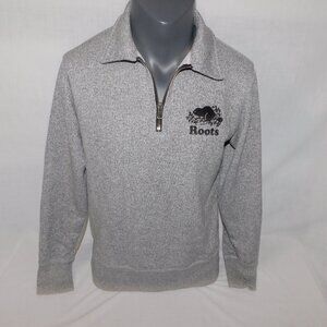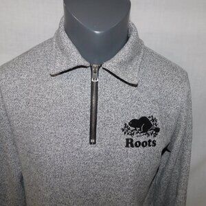Roots Canada 1/4 Zip Salt and Pepper Pullover Collard Sweatshirt Mens XS Beaver