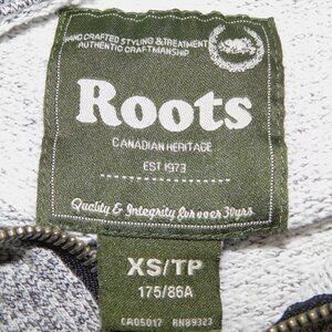This Mens XS Roots Canada 1/4 Zip Salt and Pepper Gray Pullover Collared Sweatshirt with beaver is in great clean bright condition. Sweatshirt is 55% Polyester - 45% Cotton - Machine washable.