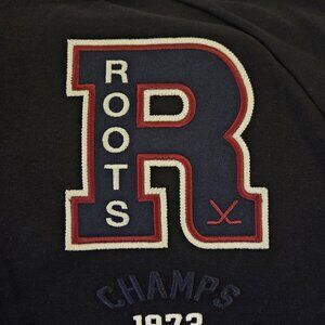 – Large varsity chenille/appliqué “R” on the chest, “ROOTS CHAMPS 73 NORTH DIV.” graphic on the back