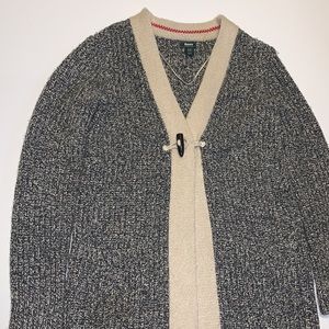 EUC Roots Canada long grey and red wool cardigan sweater in women’s size medium.