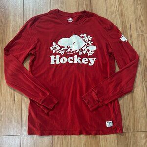 Roots Canada Mens S Hockey Long Sleeve Graphic Tee Red T-shirt Beaver