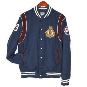 Roots Canada Wool Blend Varsity Jacket Navy Blue & Maroon Patches Mens Classic