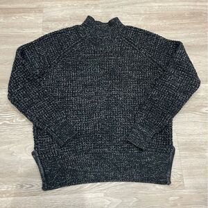 Roots Chunky Knit Cotton Ribbed Gray Black Sweater