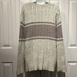 Roots Cream/Taupe Cotton V-Neck Long Sleeve Sweater Size M
