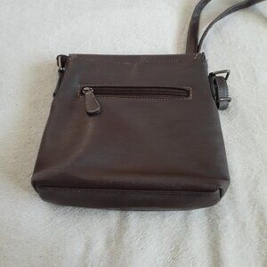 Roots crossbody bag in a classic neutral dark brown leather (no material tag, feels like leather but not a 100% guarantee).