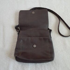 Roots Dark Brown Leather Small Front Flap Crossbody Bag Purse