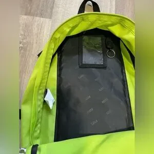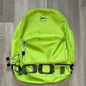 Excellent condition rare Roots neon backpack with embroidered Roots logo and lettering on front. Front zippered pouch, ID/card slot in main compartment, adjustable straps.