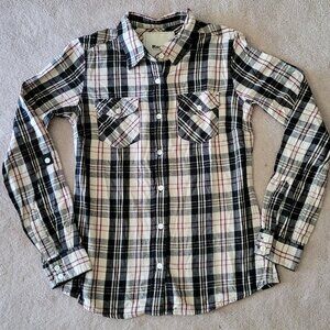 Roots Flannel Plaid Button Down Shirt Women's Size S