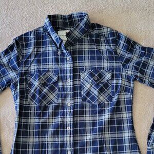 Roots Flannel Plaid Button Down Shirt Women's Size S Roots Canada Blue Gray Plai